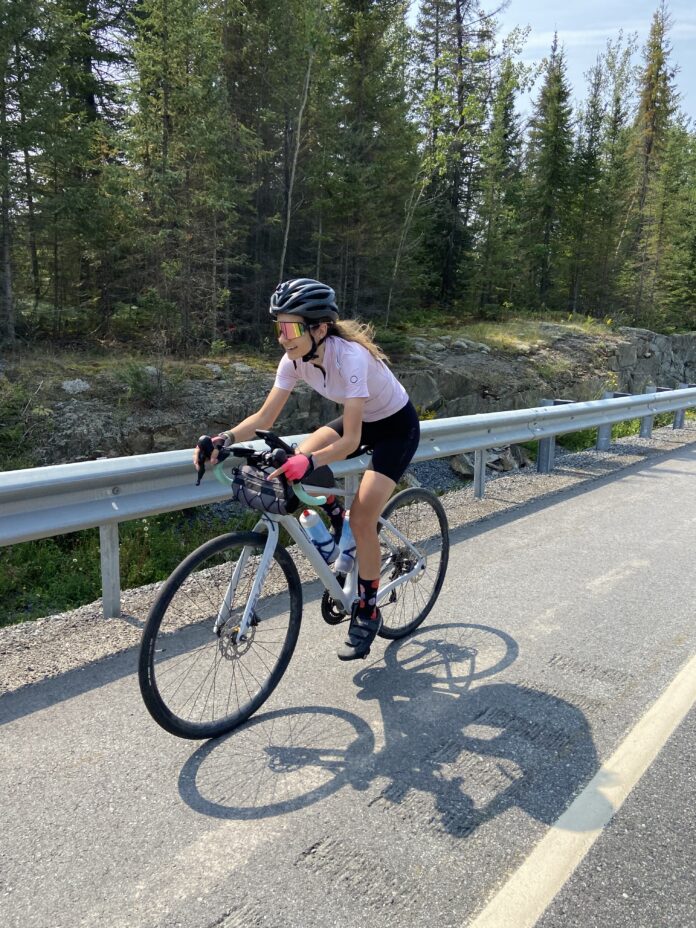 Despite not being an athlete and only having purchased a bike three months ago, she has made it across four provinces already arrived on Manitoulin Island yesterday.