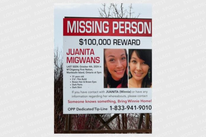 Manitoulin OPP carried out a search over two days last week in two key areas of M’Chigeeng First Nation for Juanita Migwans who went missing a year ago.