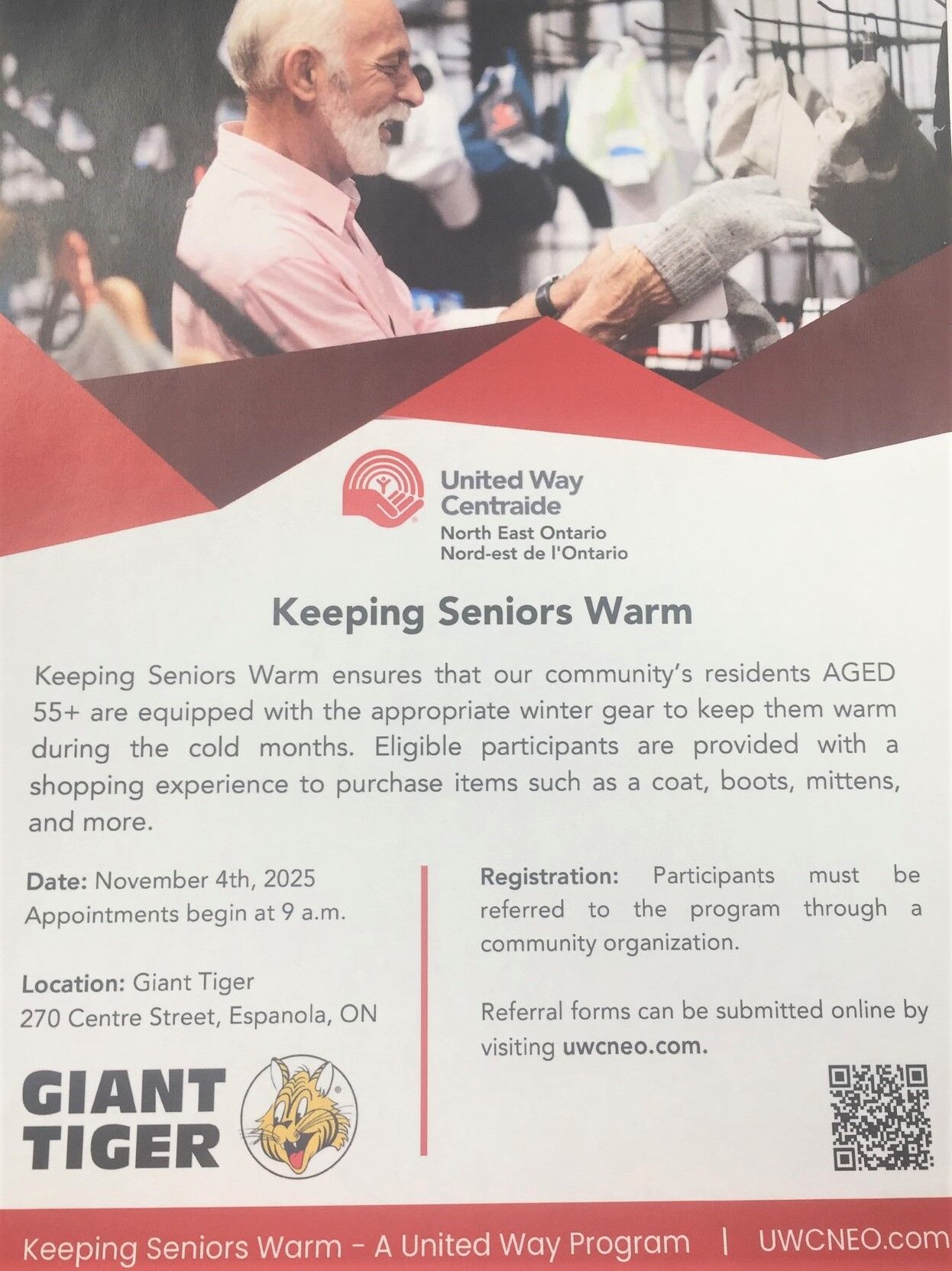 Espanola is part of the United Way’s Keeping Seniors Warm Program and is looking for applicants in the local area.