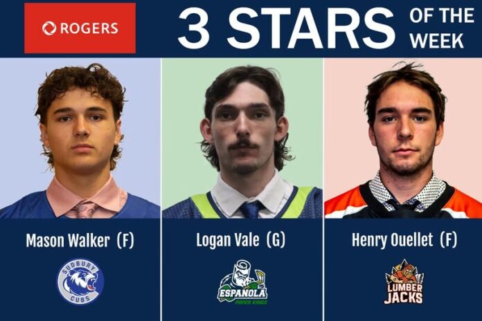 Logan Vale, the goalie of the Espanola Paper Kings was named as one of the three stars by the Northern Ontario Junior A Hockey League.