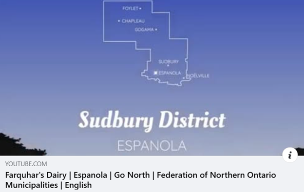 The video focuses on Farquhar’s Dairy, which is based in Espanola and has been part of the business landscape for over 6 decades, is still family run and provides products throughout Northern Ontario.